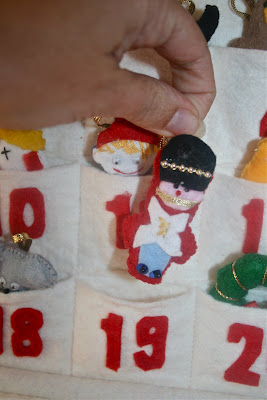 The kids love it, every day they pick a figurine from the pocket with the date number and they put it up on the tree, in turn. Sometimes I get a turn!